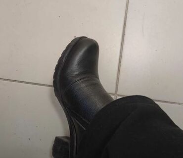 Qadınlar üçün qara dəri bot(1defe geyinilib 40razmer) - Model: bilek boyu klassik bot - Rəng: qara - Material: hamar dəri (parlaq olmayan) - Burun forması: yüngül sivri/oval - Daban: hündür blok d...
