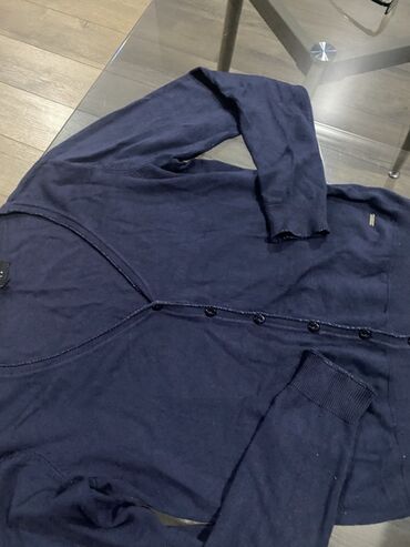 Tünd göy rəngli düyməli kardiqan - Model: klassik V-yaxa, ön hissədə