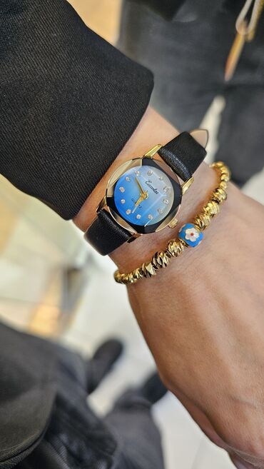Qadın qol saatı – zərif daşlı, qızılı ton - Mexanizm: Quartz - Korpus: dairəvi, qızılı rəngdə, daşlarla ətrafı bəzədilmiş bezel - Siferblat: tünd boz/gümüşü ton, roman rəqəmləri və zərif əqrəblər ...