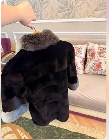 - Qol: 3/4 uzunluqda, ucları kontrast xəz haşiyəli