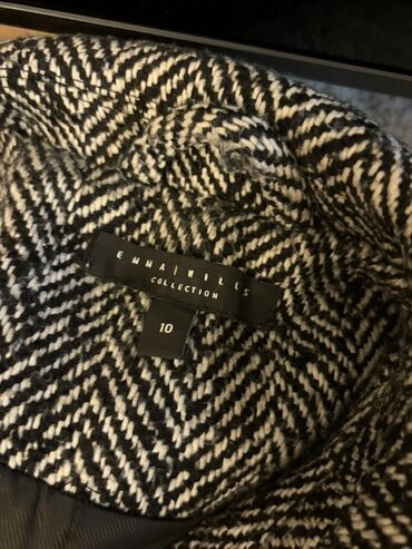 Favoritti qadın palto - Model: Favoritti trade mark - Ölçü: 50 - Rəng: tünd boz/qaraya çalan, ağ naxışlı (sünbül/“herringbone” deseni) - Material: qalın toxuma üst parça, iç hissə astarlı - Detall...