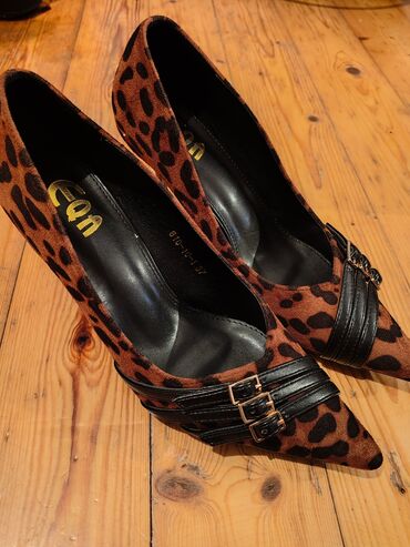 Şıq, diqqətçəkən leopard naxışlı, gündəlikdən axşama uyğun elegant tufli. Sivri burun və zərif qayış-toka dekoru ayağa zərif siluet verir. 37 ölçüyə uyğundur.