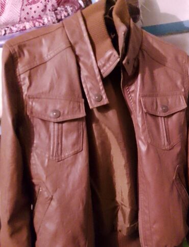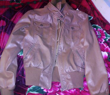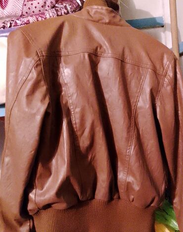 Qadın üçün dəri gödəkcə (unisex görünüşlü) qəhvəyi dəri görünümlü bomber stili qısa gödəkcə.