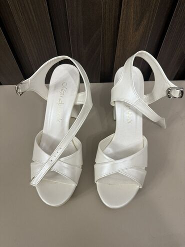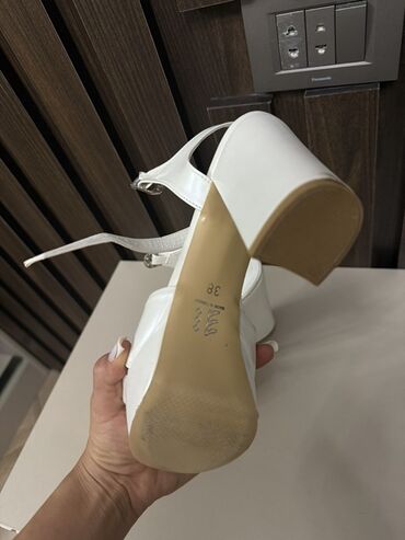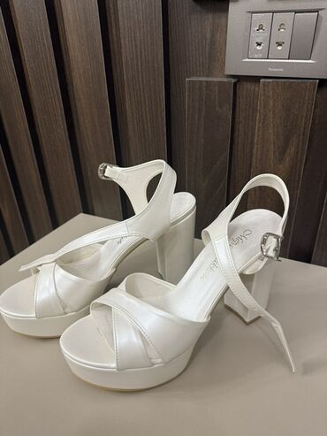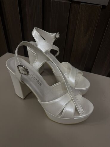 Ağ rəngli qadın platforma sandaleti 1defe istfade olunub cox rahatdir