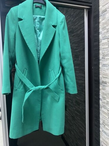 Qadın palto - Rəng: yaşıl - Ölçü: 36 (etiketdə göstərilib) - Model: ikiqat düyməli, qolsuz deyil, uzunqol; ön hissədə iki ədəd dekorativ/örtülü ciblər - Yaxa: stend yaxa (yüksək) - Uzunluq: dizə y...