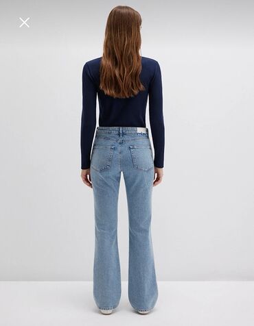 Qadınlar üçün klassik tünd-mavi flared (boru kəsimi) cins şalvar - Rəng: tünd mavi, açıq yuyulma effektli - Kəsim: dizdən aşağı genişlənən flared/boru - Bel: standart bel, 5 kəmər halqası - Ciblər...