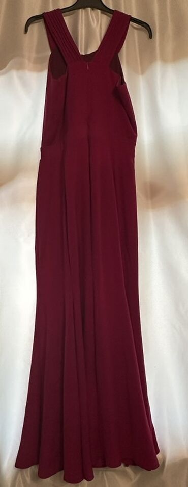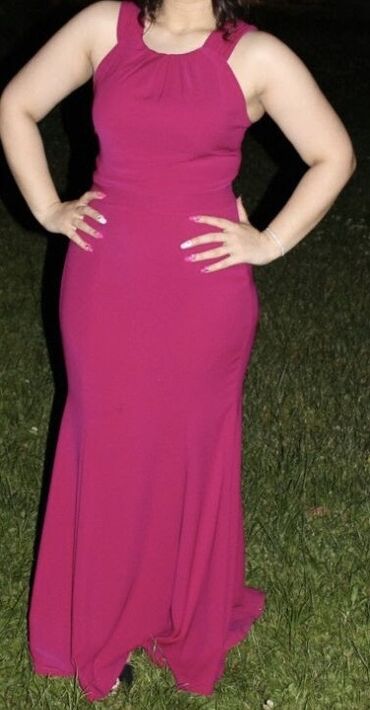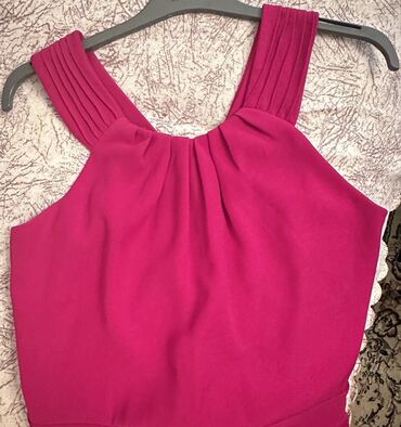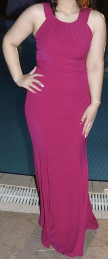 İşlənmişQadınlar üçün nəzərdə tutulmuş bu uzun, fuksiyadan tünd qırmızıya çalan rəngdə ziyafət donu zərif və göz oxşayan görünüş təqdim edir. Donun yuxarı hissəsi büzməli dizayna malikdir. Yaxası yuvarlaqdır və qollarında büzməli detallar var. Bel hissəsi dar kəsimlədir, ətəyi isə genişlənərək yerə qədər uzanır. Arxa hissəsində görünməyən fermuar yerləşir. Bu don xüsusi tədbirlər, ziyafətlər və məzuniyyət gecələri üçün uyğundur. 1 dəfə geyinilib. Ölçü 44-46. Qiyməti 20 AZN. Ünvan: Qarayev metrosu