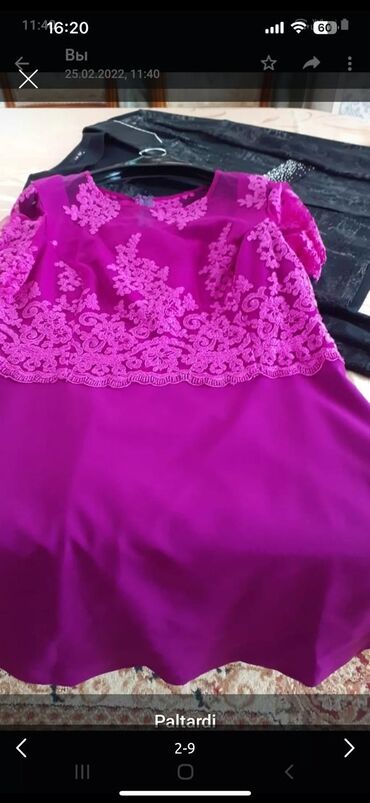 1) Fuksya rəngli ziyafət/şənlik paltarı