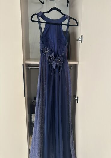 Şənlik/gecə geyimi – tünd göy, parıltılı maxi don - Model: Uzun, axıcı ətəkli, halter tipli yuxarı hissə, arxadan iki nazik qayışla tamamlanan dizayn - Parça: Parıltılı effektli, yüngül və dalğalı...