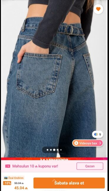 - Ölçü: 34 (etiketdə göstərilib) - Model: straight/relaxed fit, geniş
