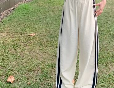 Ağ rəngli geniş kəsimli idman şalvarı. *1dəfə geyinilib balaca olduğu üçün satılır.(45₼alınıb ) heç bir defekti yoxdur.