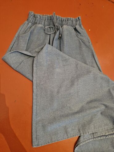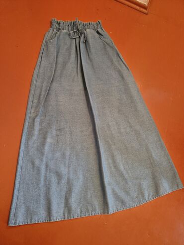 Açıq mavi rəngdə, enli biçimli cins şalvar. Yüksək belli və rahat geyimi ilə fərqlənir. Gündəlik istifadə üçün idealdır və müxtəlif üslublarla kombinasiya etmək mümkündür.