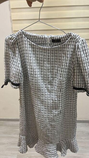 - Dizayn: qısa qollar, qol uclarında qara lent detalları, ətək hissədə yüngül volan