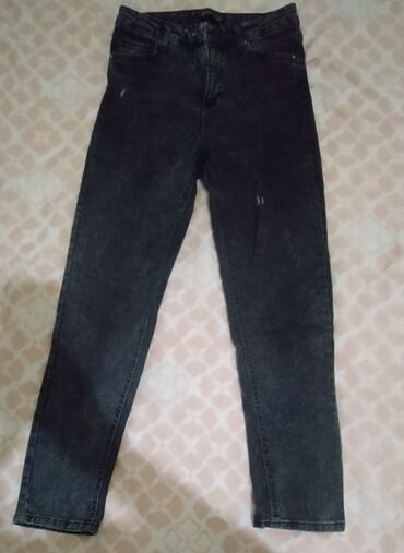 - Qara jeans: Yüksək/orta bel görünüşlü, beş ciblidir. Azacıq solğun “washed” effekti ilə dar kəsim (skinny/straight arasında). Günlük kombinlər üçün rahat elastik denim.