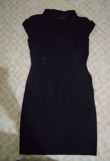 - Qara ofis donu: Qısaqol, yaxalıqlı üst hissə, beldə dekorativ düymələr, dizə qədər düz ətək. İş və gündəlik şık tərzə uyğundur.