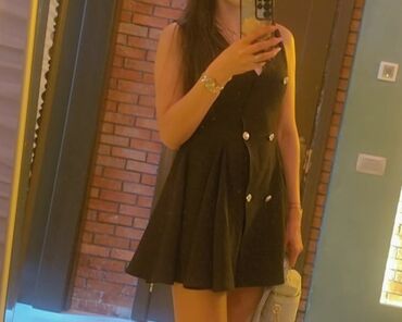 - Qısa qara don: V-yaxa, ikiqat sinə kəsimi görüntüsü verən asimmetrik ön panel, dekorativ düymələr, ətək hissəsi qatlana-qatlana açılan A-kəsim. Həm gündəlik, həm də axşam kombinləri üçün uyğundur.Qiymet cut 40azn tek tekde sata bilerem