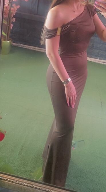 - Axşam geyimi: tünd qəhvəyi, bir çiyinli, balıq kəsimli uzun don. Elastik parça, yandan yüngül şırımlı, çiyində büzgü və dekor elementləri. Fiqquranı vurğulayan siluet.Qiymet-50azn