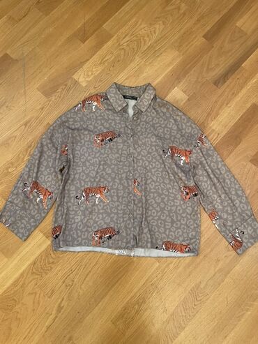 2) Boz köynək – üzərində pələng və leopard naxışları. Uzunqol, yaxalıqlı, ön hissəsi düyməlidir. Geniş kəsim, gündəlik və ya casual kombinlər üçün uyğundur.