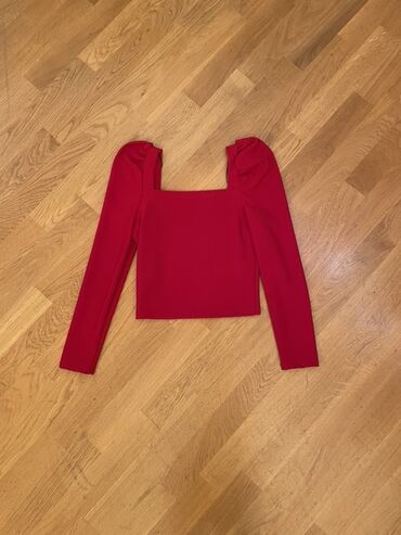 3) Qırmızı top – dördkünc dekolte, uzunqol, yüngül puff-çiyin effektli. Qısa kəsim, elastik parça, bədənə oturan siluet.