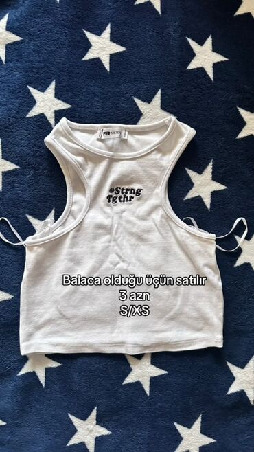 - Mavi Zara şalvar + ağ qolsuz top. Yazı: “Zara Şalvar, İkisi biryerdə 10 AZN”.