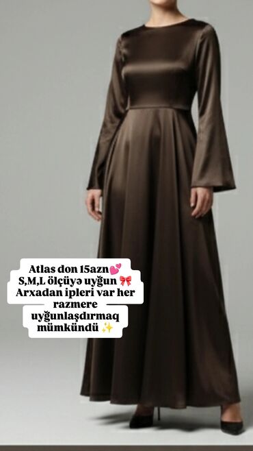 Qadın geyim və aksesuarları dəsti 1) Qara atlas effektli don - Dərin olmayan V-yaxa, üst hissədə qatlana dizayn - Dizə qədər uzunluq - Yan cibi var - Zərif, klassik siluet, gündəlik və ya xüsusi g...