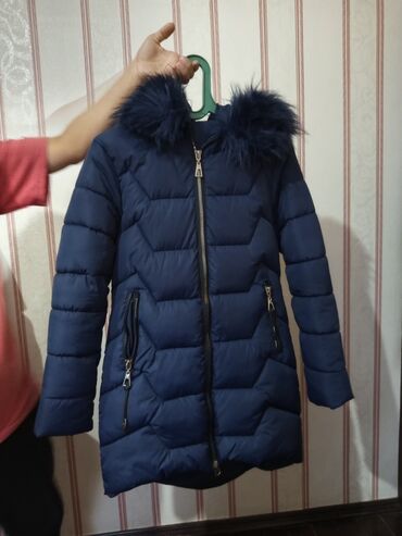 70 uzunu 50 qolu. Uşaq üçün qışlıq parkа – VENIDISE Collection, ölçü 140. - Rəng: tünd göy - Uzun model, qalın dolğu ilə - Kapüşon və süni kürk kənarı - Ön hissədə həm zəncirbənd, həm də düymə ilə...
