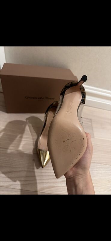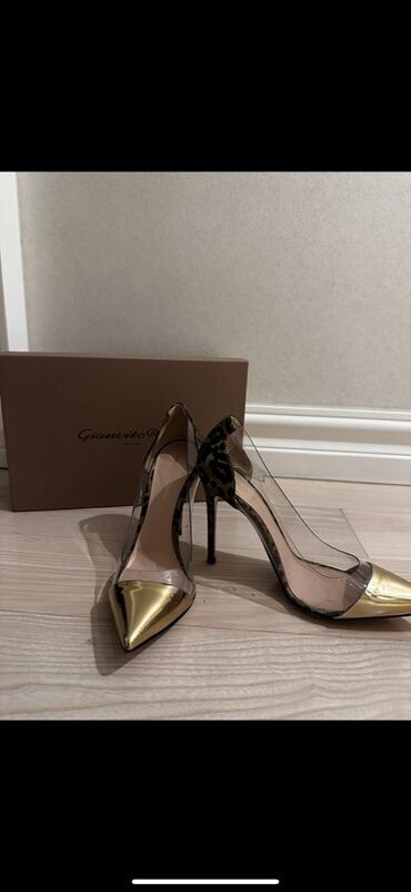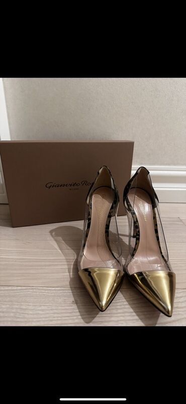 Qadın dəbli tuflisi – qara rəng, incə burunlu, hündürdaban. Xüsusiyyətlər: - Model: Gianvito Rossi (daxili brend yazısı görünür) - Rəng: klassik qara - Material: hamar dəri görünüşlü üstlük, içlik...