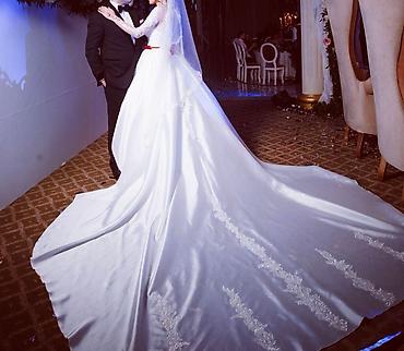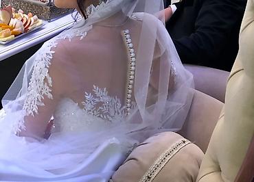 Gəlinlik donu,Dubaydan gelinim üçün almişdim1000dollara.Şleyflədir.Çiyinlər çixir,dekolte alinir,bel hissə arxadan korsetdədir.Razmer 38-40,bir dəfə geyilib.Altda setkasi var,çox ince görünüş verir