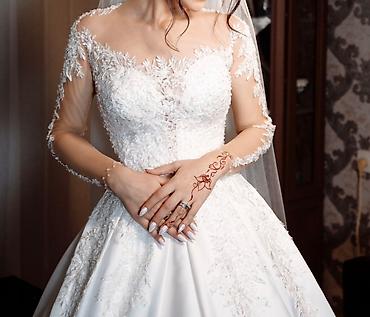 A-şəkilli gəlinlik - Rəng: südlü ağ/ivori tonlarındagə kimimi ehtiyacı varsa götürsün pul istəmirəm türküyənindi 36 razmer iki dəfə geyilib - Üst hissə: strapless, ürək formalı dekolte; krujeva və...