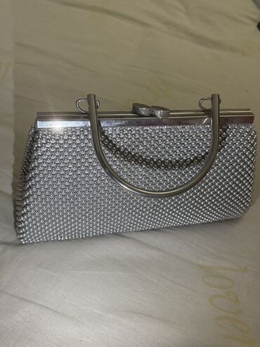 Gümüşü rəngdə qadın axşam çantası/klatç