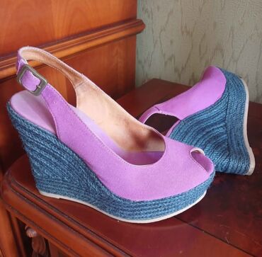 3) Bənövşəyi/çəhrayı üstlü mavi kənarlı platforma (wedges)