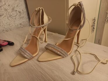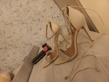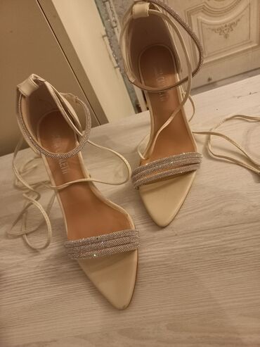 Pudra rəngli, nazik dabanlı sandal.Zərif dizaynı ilə xüsusi ve gündəlik günlərdə geyinmek olar. Yalniz toya geyilib 2-3 defə. Yaxsi veziyyetdedir. Razmer 38, dabanin hund 11 sm Whtsp var