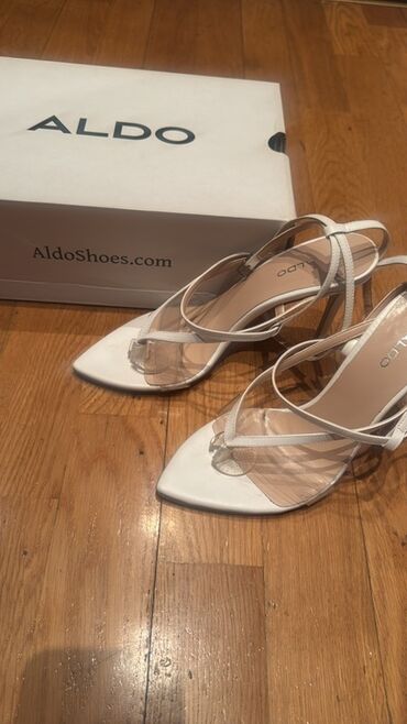 ALDO brend qadın ayaqqabısı – gümüşü rəngdə, zərif stilet dabanlı açıq burun sandal. Xüsusiyyətlər: - Rəng: metalik gümüşü - Model: açıq burun, incə stilet daban - Daban hündürlüyü: təxmini 8–10 s...