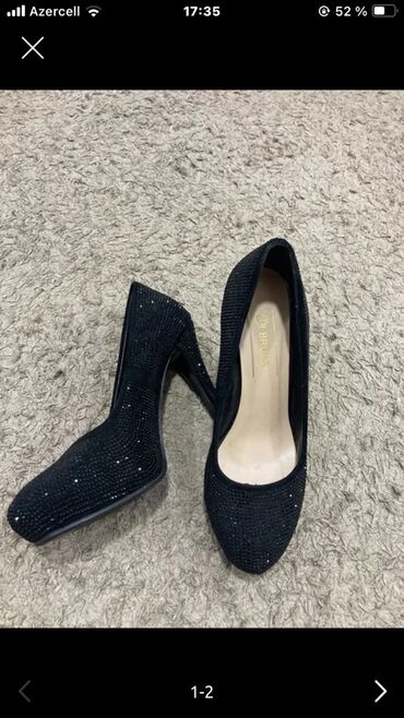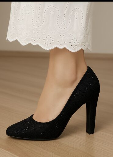 Qadın klassik tuflisi – qara rəng, parıltılı daşlı.37 razmer .1 defe toya geyilib yeni kimi