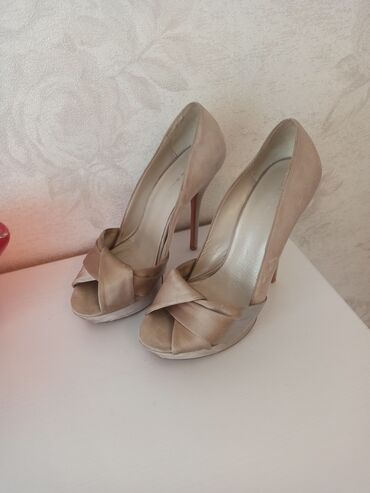 Qadın yüksək daban ayaqqabıları – krem/bej rəng - Brend: GUWANQ (etiket iç astarda görünür) - Ölçü: 36 (daxildə 26-721 | 36 qeyd olunub) - Model: incə burunlu, stilettos tipli hündürdaban - Daban h...