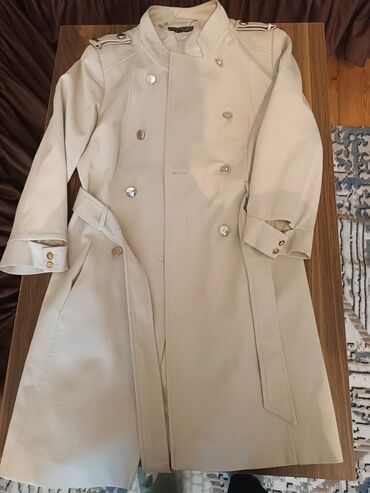 Bej rəngli qadın trençkot 1defe geyinilib yeniden secilmir ela veziyetdedi - Klassik dizayn: dizaynda ikisıralı görünüşlü qapaqlı düymələr, geniş düşən yaxa və çiyin epoleyləri. - Kəmər: eyni parça...