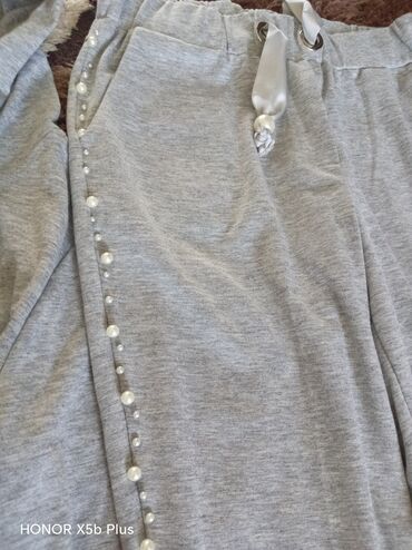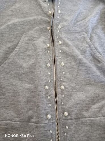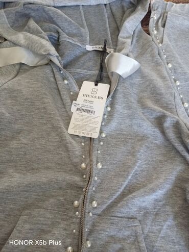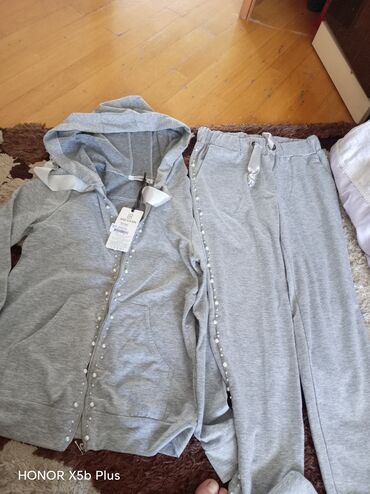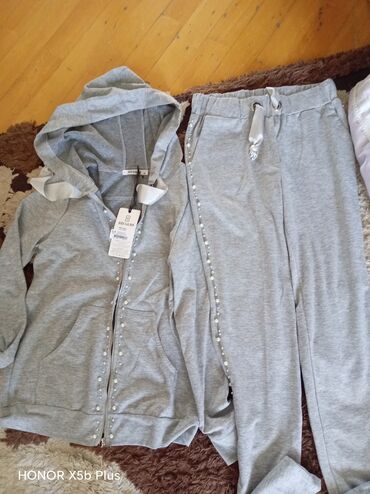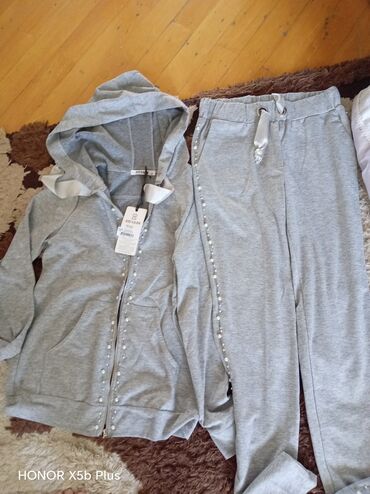 Parlaq detallı idman dəsti – qadın üçün - Rəng: ağ/ekru - 2 hissəli dəst: kapüşonlu, fermuarlı svitşört + iplə tənzimlənən bel və yan cibləri olan şalvar - Parça üzərində sepin/pailet bəzəklər – h...