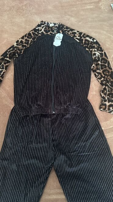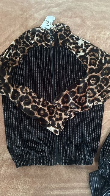 Qadın idman dəsti – kapüşonlu sweatshirt və şalvar - Rəng: qara - Detallar: leopard naxışlı bağlama və haşiyələr (kapüşon ipi, bel, qol, cib və yan tikişlərdə) - Şalvar: düz kəsim, yan hissədə iki...