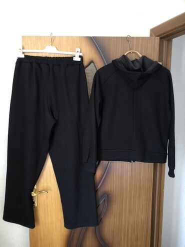 QuQu Fashion idman dəsti – ölçü 44 - Rəng: qara - Komplekt: kapüşonlu fermuarlı üst + elastik belli şalvar - Material: qalın, yumşaq trikotaj/parça (isti və rahat) - Üstdə iki yan cib, manjetli qo...