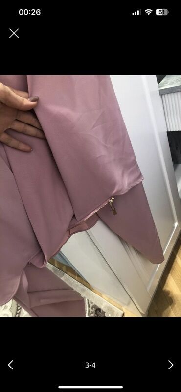 Qadın geyim dəsti – 4 ədəd 1) Tünd məxməri-bordo rəngdə uzun don - Uzunqol, döşəmə qədər uzunluq - Önündə krujeva və payetlərlə bəzədilmiş sərbəst qolsuz jileyi xatırladan örtü - Yaxası büzməli de...