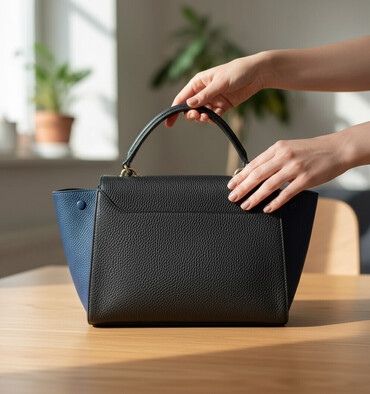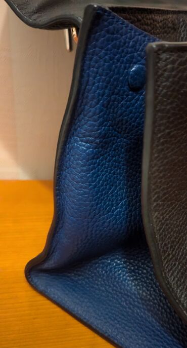 İşlənmişQadın çantası – iki rəngli dəri (qara və lacivərt yan panellər)