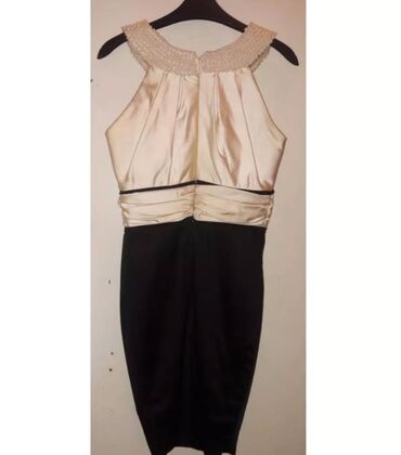 Ölçü məlumatı şəkillərdə görünmür; uyğunluğu üçün ölçüləri dəqiqləşdirmək tövsiyə olunur. Rənglər: krem və qara. Bəzəklər: inci və daş detalı. Parça: atlas görünüşlü üst + elastikliyi az olan ətək hissəsi.
