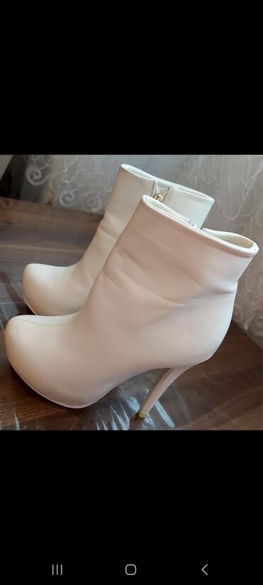 Zərif geyimlərlə, xüsusilə ziyafət və xüsusi günlər üçün uyğun. Ivori tonu gəlinlik və açıq rəngli kombinlərlə asanlıqla uyğunlaşır. Ölçü etiketləri görünmür; ölçü məlumatı üçün ayaqqabının daxili uzunluğunu ölçməklə dəqiqləşdirmək olar.