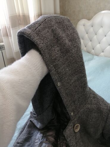 Qadınlar üçün kapüşonlu palto M-l Ölçü Qalınlığı İçin Astarı tam qaydasında Belində yiğim üçün ipi var - Rəng: boz-qara qarışıq, iri “balıqqulağı” (herringbone) naxışlı - Model: dizə yaxın uzunluq...