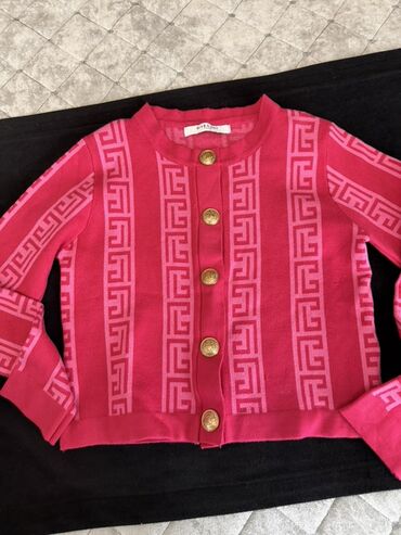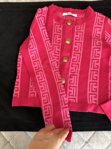 Qadın sviteri/kardiqan – çəhrayı tonlarda, yunan frezi naxışlı trikotaj