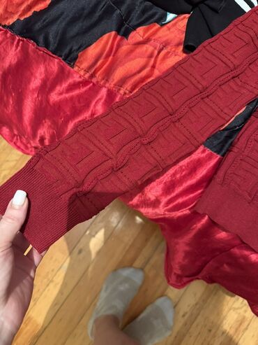 Qırmızı qadın kardiqanı - Model: Dizaltı uzunluqda, düyməli kardiqan - Rəng: Parlaq qırmızı - Yaxa: Dairəvi, rahat oturuş - Qol: Uzun qol - Bağlanma: Ön hissədə sırayla metal görünümlü düymələr - ...