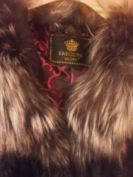 Zərif dizaynlı uzun xəz palto - Material: təbii mink (vizon) xəz - Rəng: açıq qəhvəyi-bej tonlarında, tünd qəhvəyi həcimli yaxalıq - Kəsim: uzun, düz siluet; enli üfüqi pannellərlə işlənmiş - Bağl...