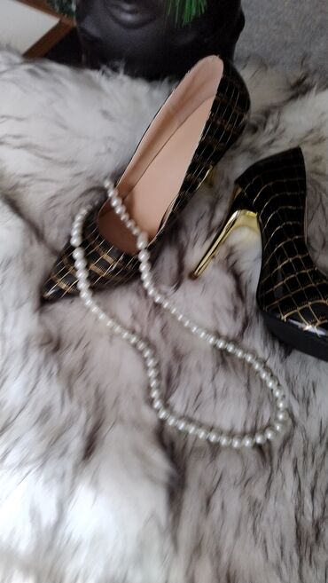 Qadın klassik tufliləri - Rəng: qara - Üst material: hamar sintetik dəri - Burun forması: iti (pointed toe) - Daban: nazik stilet, təxmini 9–10 sm - Daxili: açıq bej rəngli içlik - Ölçü: 36 (ayaqq...