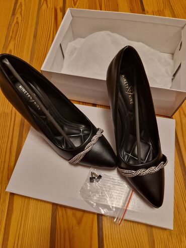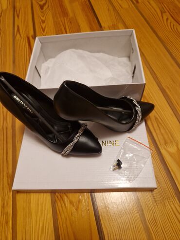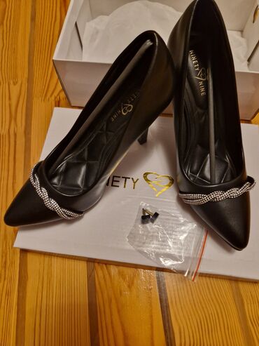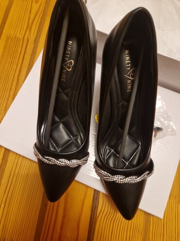 Qara rəngli klassik qadın tufliləri - Model: sivri burunlu, nazik və hündür tapança (stilet) daban - Dizayn: yan hissədə açıq kəsim, minimalistik və zərif siluet - Material: hamar, yüngül parıltıl...