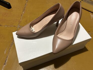 Bej/nude rəngdə klassik qadın tuflisi - Brend: COCO (daxili altlıqda loqo görünür) - Stil: nazik burunlu, stilet daban - Material: hamar, parlaq səthli (süni dəri effektli) - Daban hündürlüyü: təxm...